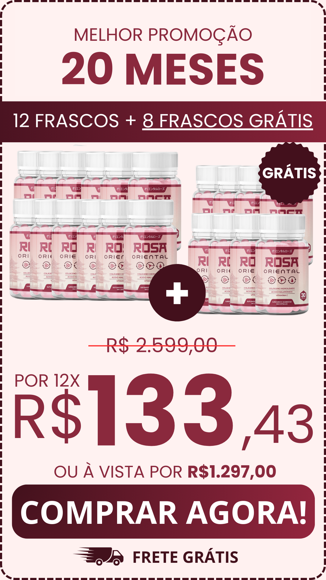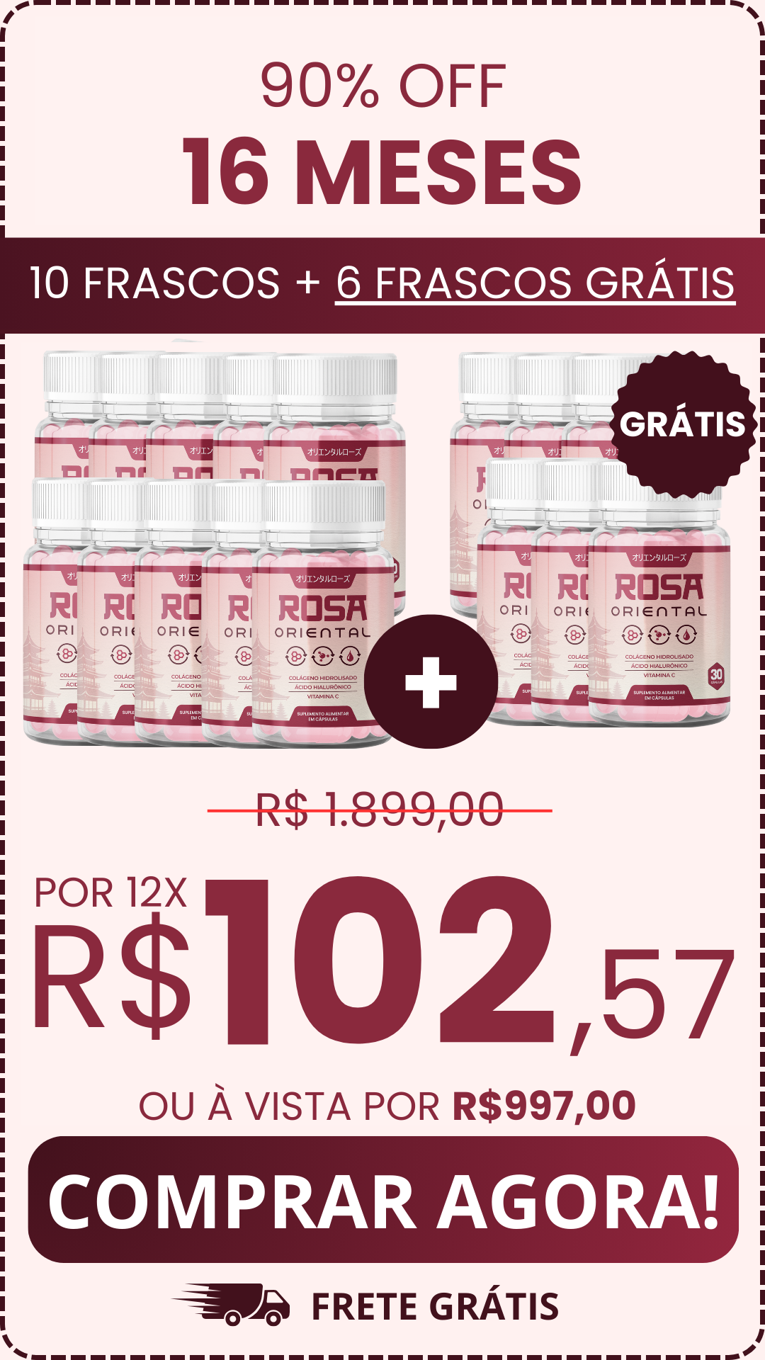 O Rosa Oriental é um produto desenvolvido para promover o rejuvenescimento da pele, inspirado nos ingredientes milenares da Ásia. Sua fórmula combina colágeno de origem japonesa, ácido hialurônico fermentado, chá verde antioxidante e vitamina B5, projetados para manter a pele firme, hidratada e iluminada.